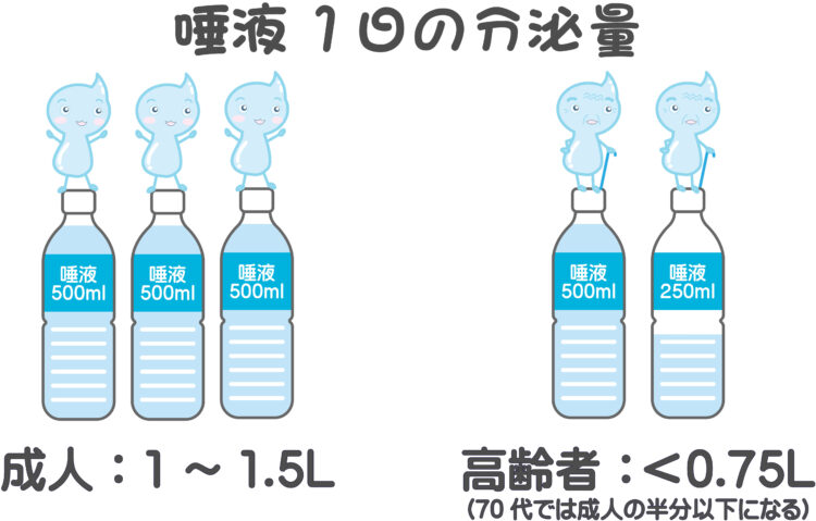 1日に出る唾液の量は500~1500ml程で
