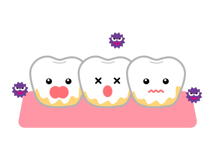 歯のすき間や奥歯の溝にプラーク(歯垢)が残ると